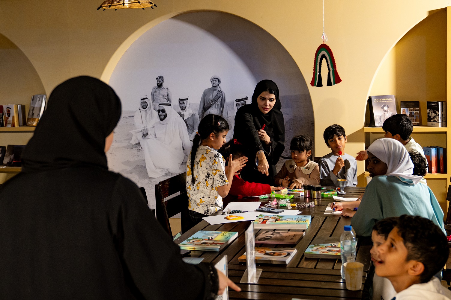 كما تناولت الورش الفنية مفردات من تاريخ الإمارات المجيد وتراثها العريق، ولاقت لعبة «المسيرة» تفاعلاً لافتاً من الأطفال الذين تنافسوا في الإجابة عن أسئلتها المستمدة من إصدارات الأرشيف والمكتبة الوطنية، بما تقدمه من معلومات موثوقة ودقيقة تسهم في ترسيخ المعرفة الوطنية بأسلوب تفاعلي مشوق.