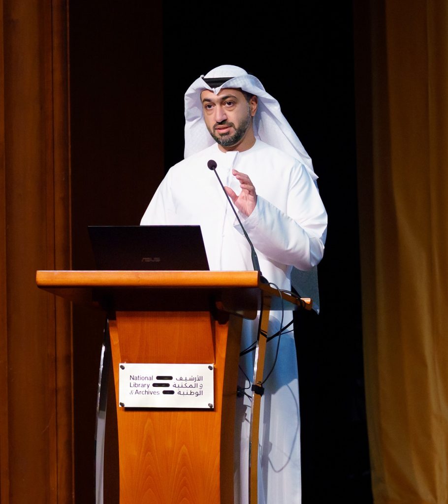 كما ألقى الدكتور هزاع النقبي مدير إدارة الأرشيفات بالإنابة كلمة تناول فيها أبرز إنجازات الأرشيف والمكتبة الوطنية خلال عام 2025، مشيراً إلى ما تحقق من تطور في منظومة العمل الأرشيفي في الدولة، وإطلاق سياسة حماية المعلومات ذات القيمة الوطنية بوصفها أصولاً استراتيجية وطنية.
